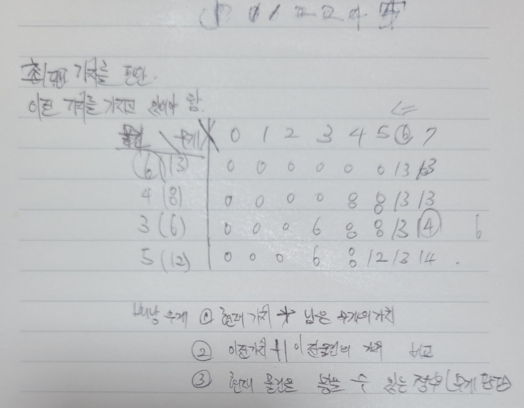 배낭의 값은 연속된 값을 가지고, 이전의 최대값의 모든 경우의 수를 가지고 있어야 한다.