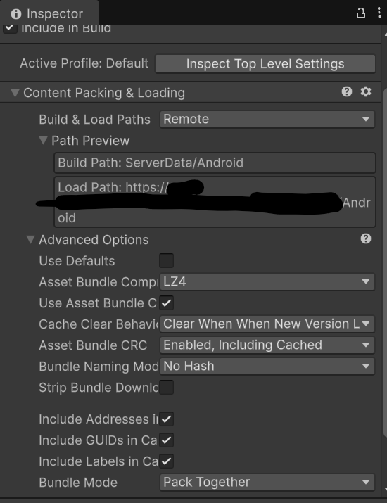 include in build : 어드레서블 빌드 시 해당 그룹이 에셋으로 추출될지 여부