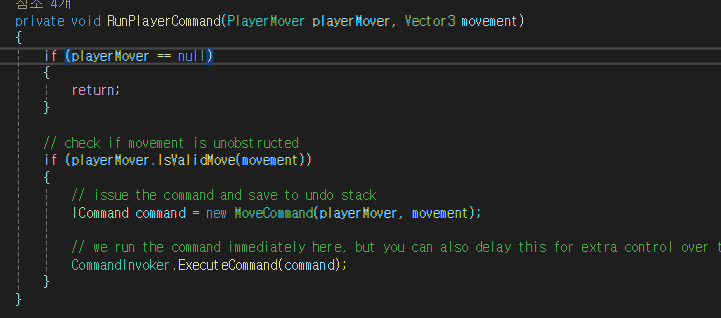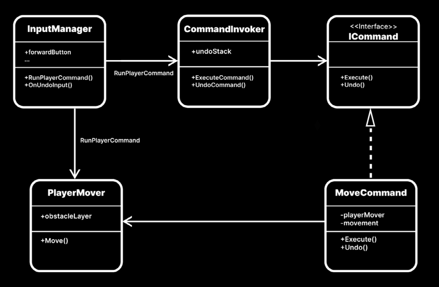 | InputManager | CommandInvoker에 MoveCommand를 생성해서 보냄으로서, ICommand를 저장시킴 |