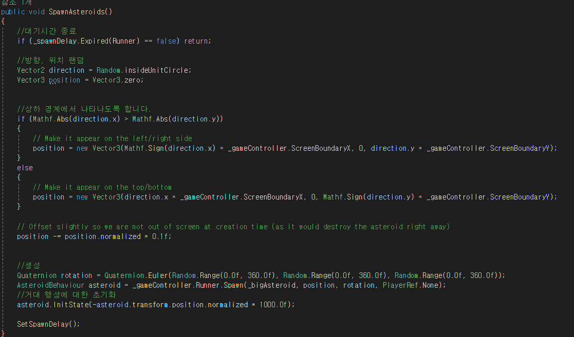 - 플레이어가 Master일 경우에만 행성의 생성과 게임의 종료를 판단한다.