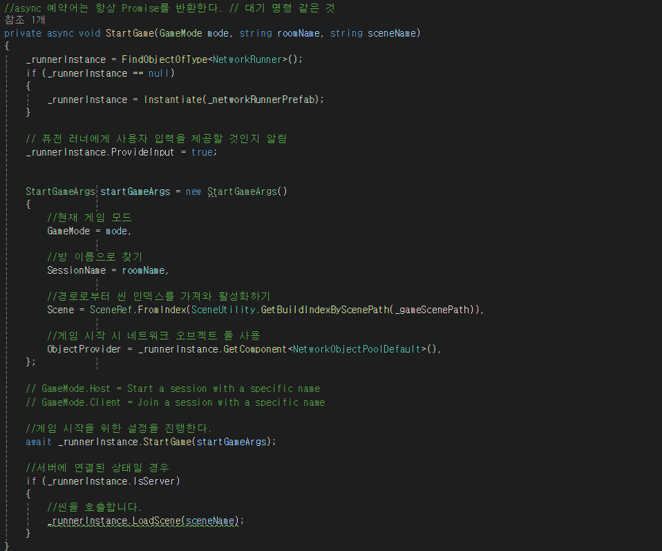 1. 타이틀에서 네트워크 시작을 위한 Runner 생성과 방 번호를 통해 네트워크에 연결된다.