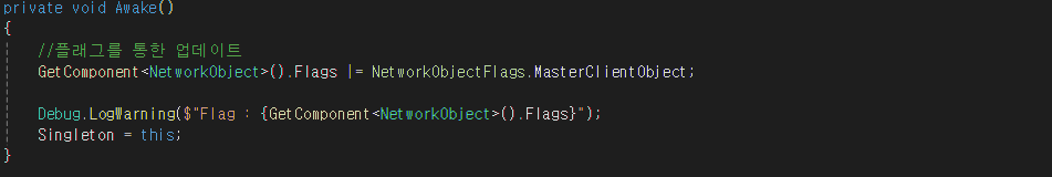 | flag |= NetworkObjectFlags.MasterClientObject; (0) | 2024.06.18 |